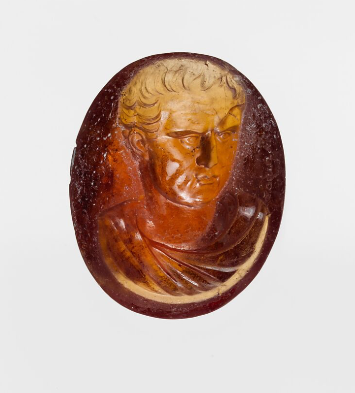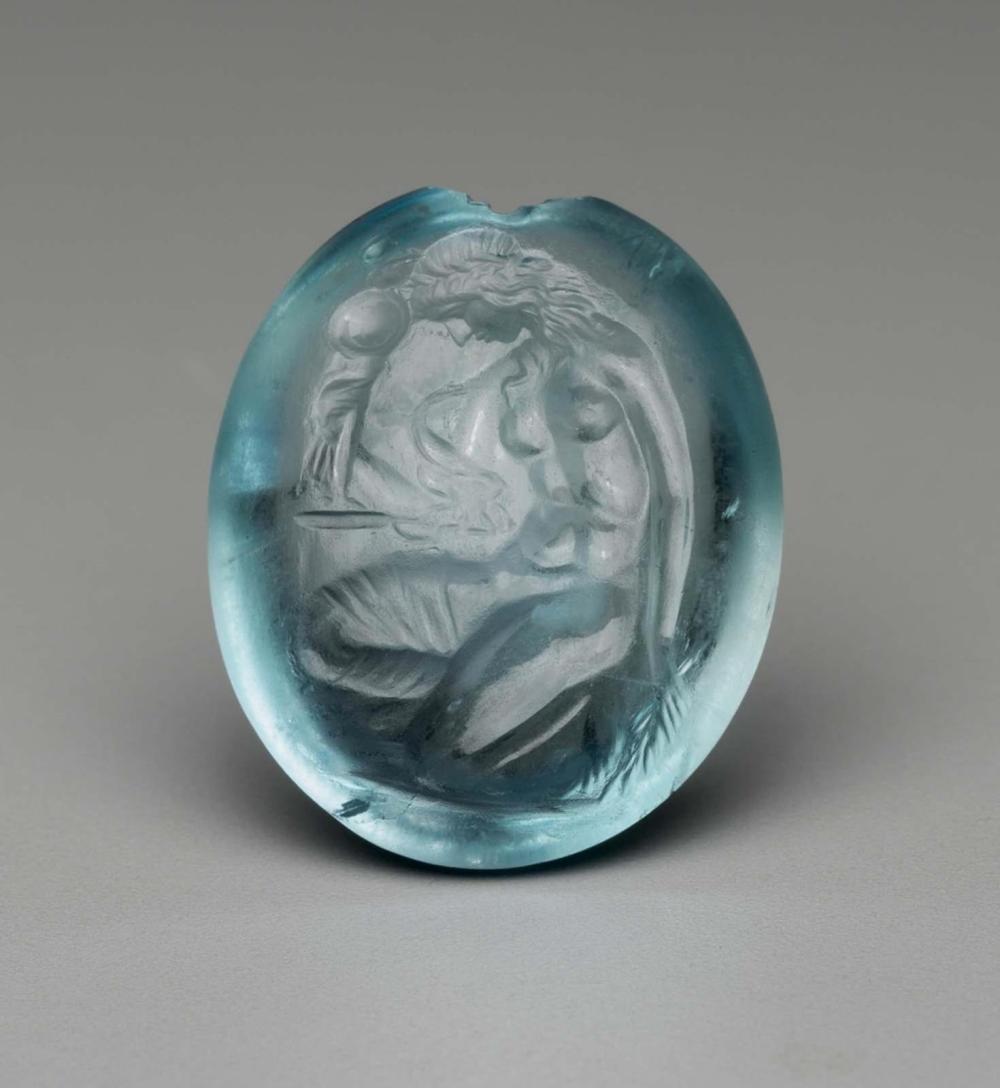 Oval gem with Kassandra kneeling at the Palladion, Greek, Late Hellenistic Period. late 1st century B.C.